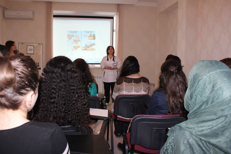 As part of the project, doctors from "Saglam Ailə" Medical Center conducted seminars and practical training sessions once a week for six weeks for members of the "Medical Club" of the "Ireli" Public Union.